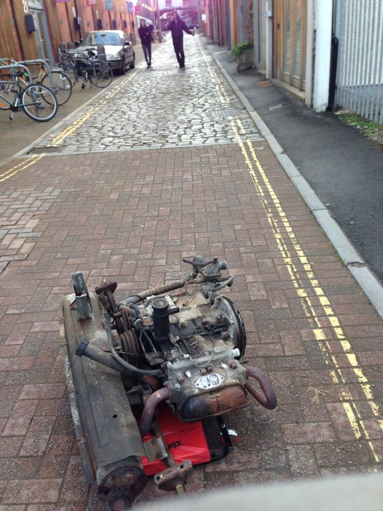the old 2.1DJ engine is out of the double slider and gets dragged along the lane into Ak HQ in Bristol…